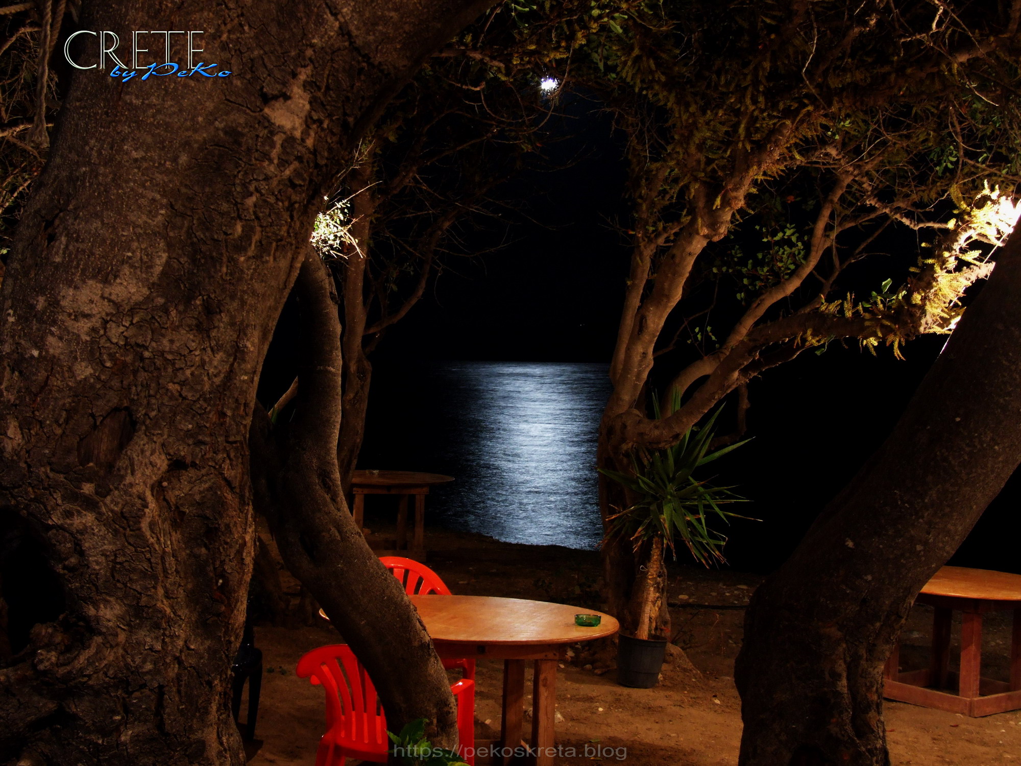 Hier haben wir schon viele Nachmittage bis in den späten Abend mit Freunden so manche Karaffe Raki geleert und unzählbare Portionen von Marias lecker gegrillten Souvlaki-Spiessen verzehrt. Und manchmal brachen wir erst zum Heimweg auf, wenn schon der Vollmond das Meer vor Marias Kantina in ein silbriges Licht färbte.